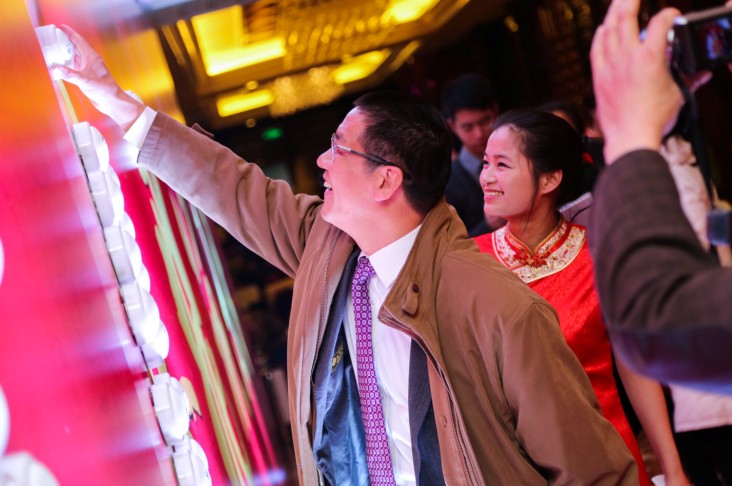 当员工还未步入酒店二楼会场通道时,就远远看到集团公司六位高层领导已经站在过道里等候大家的到来了。走进一看才发现是团拜会筹备组特意制作的“1:1”等比例KT版模型,与平时工作中的严谨与严肃明显不同的是,只见每位领导笑容可掬,一展亲“民”风范。